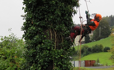 Spezialfällungen kommen dann zum Einsatz, wenn Bäume nahe an Gebäuden oder Strassen stehen. Diese aussergewöhnliche Arbeit wird durch die Seilklettertechnik ermöglicht; sicheres Klettern bis in jede Baumkrone bzw. an praktisch jede Stelle, um dort die entsprechenden Arbeiten erledigen zu können.